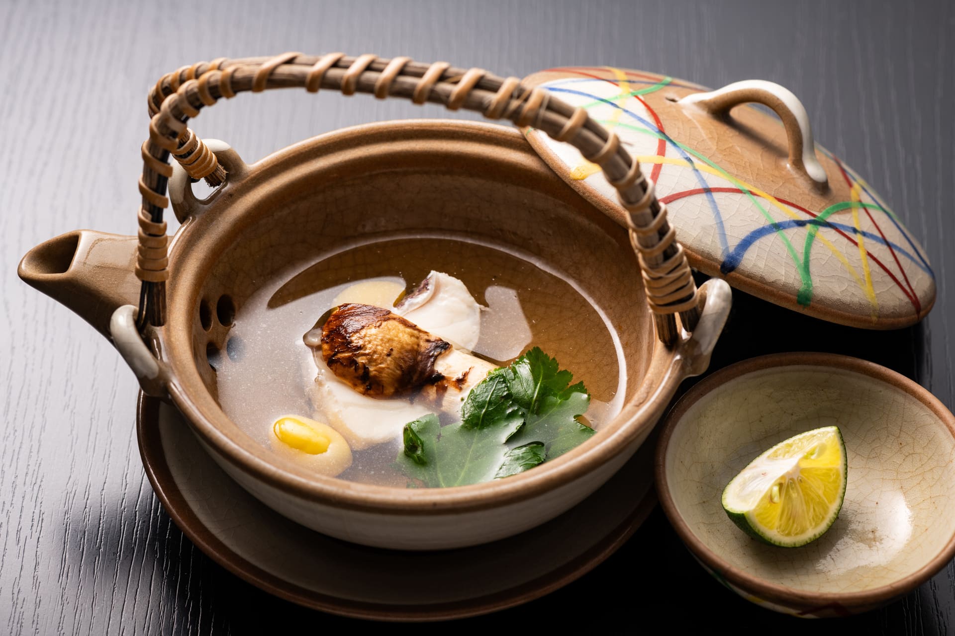 ~鮪、白身の青唐辛子醤油漬け・お椀・香物~